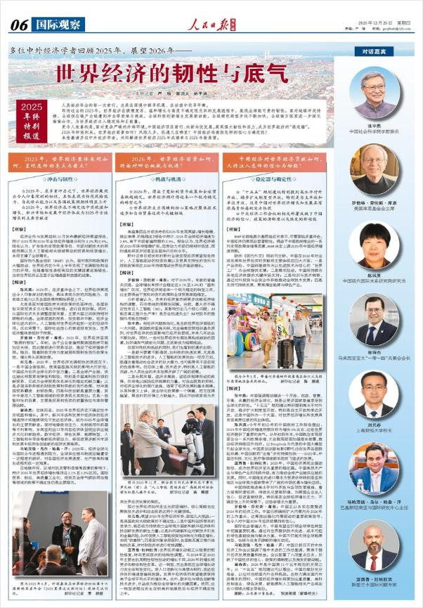 本报邀请多位中外经济学者,共同解读世界经济2025年成绩单与2026年新展望。