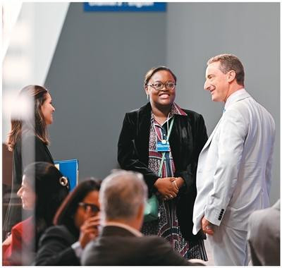 图为2025年6月,外国嘉宾在世界经济论坛第十六届新领军者年会(2025夏季达沃斯论坛)现场交流讨论。新华社记者李然摄